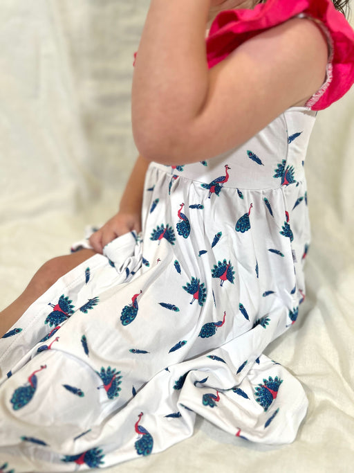 Our Toddler Flutter Dress features unique double flutter cap sleeves design. Perfect for any occasion, this dress is both cute and practical.
